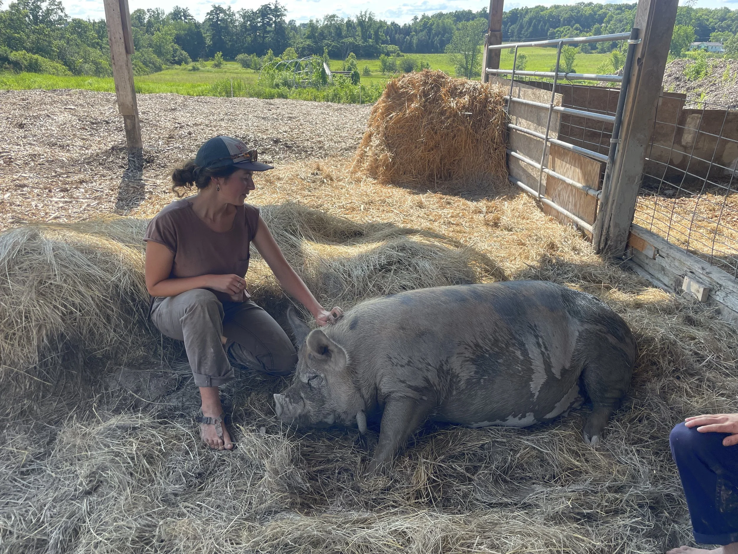 Ella Mighell is the Land/Education Liaison at Bread & Butter Farm. From managing Burger Nights to taking point with the woodland pig herd, she enjoys wearing many hats & ebbing with the seasons. On-farm they enjoy preserving & processing food and other seasonal materials, looking to the trees, learning from all beings and practicing stewardship of place. She believes deeply in the paradigm-shifting capabilities of community & land connection.